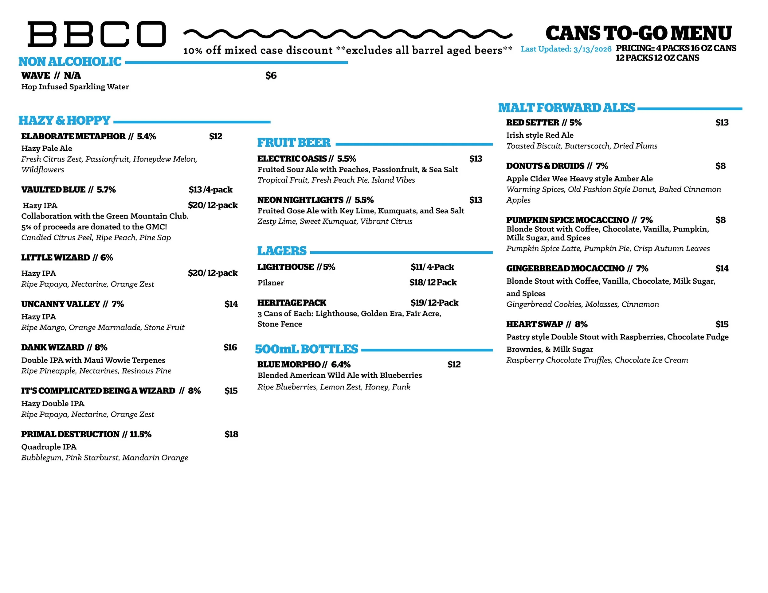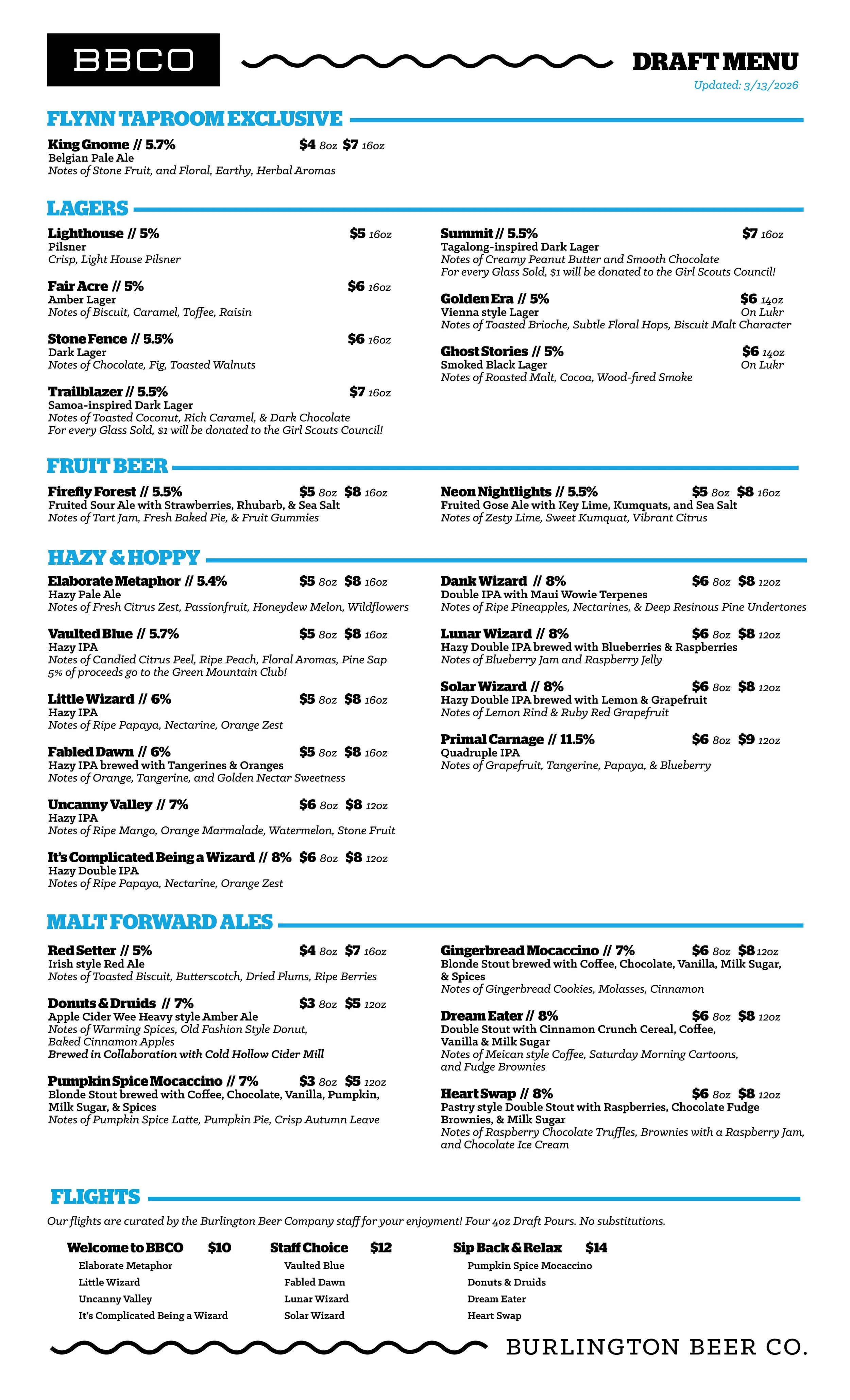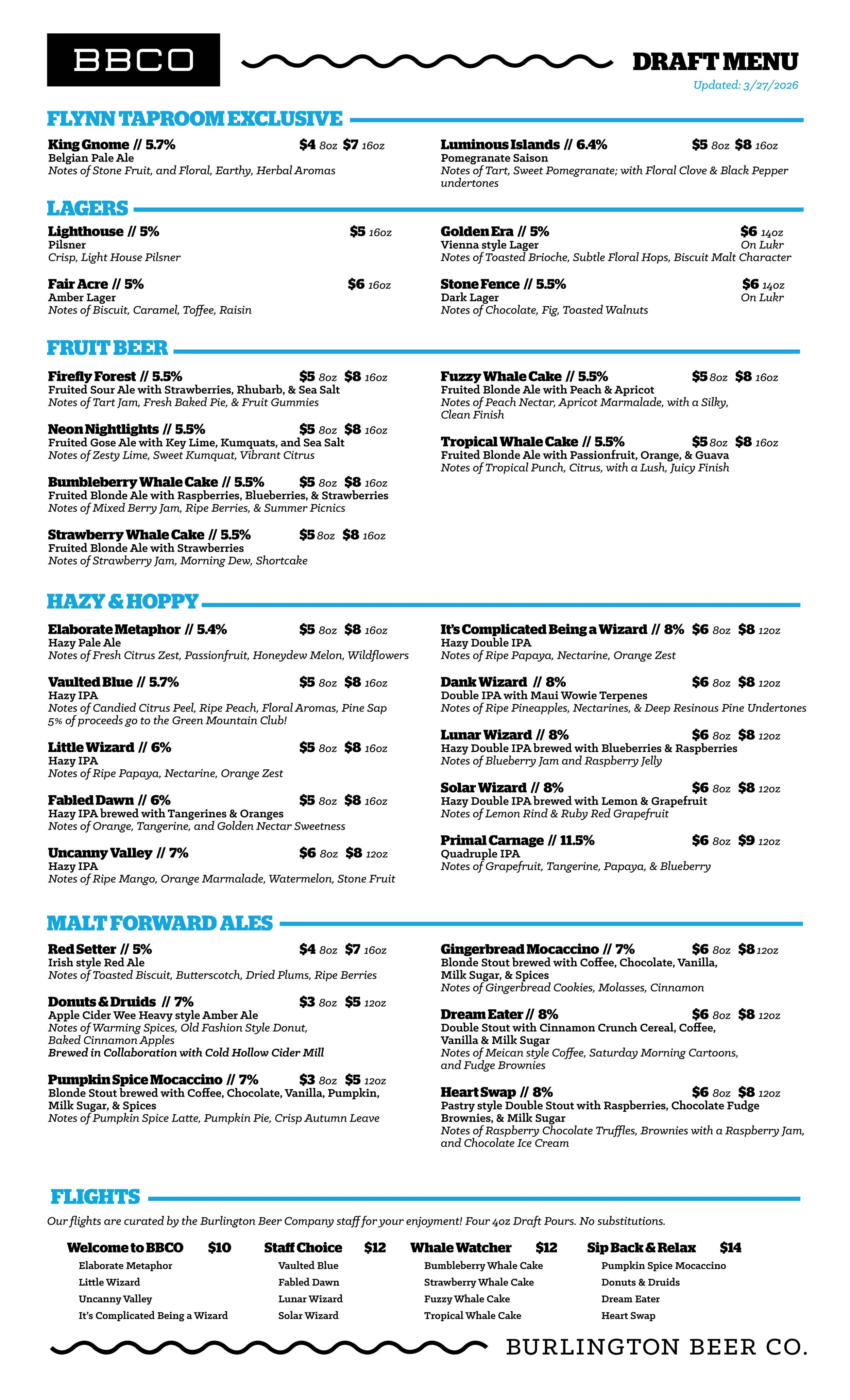 Current Beer Menus