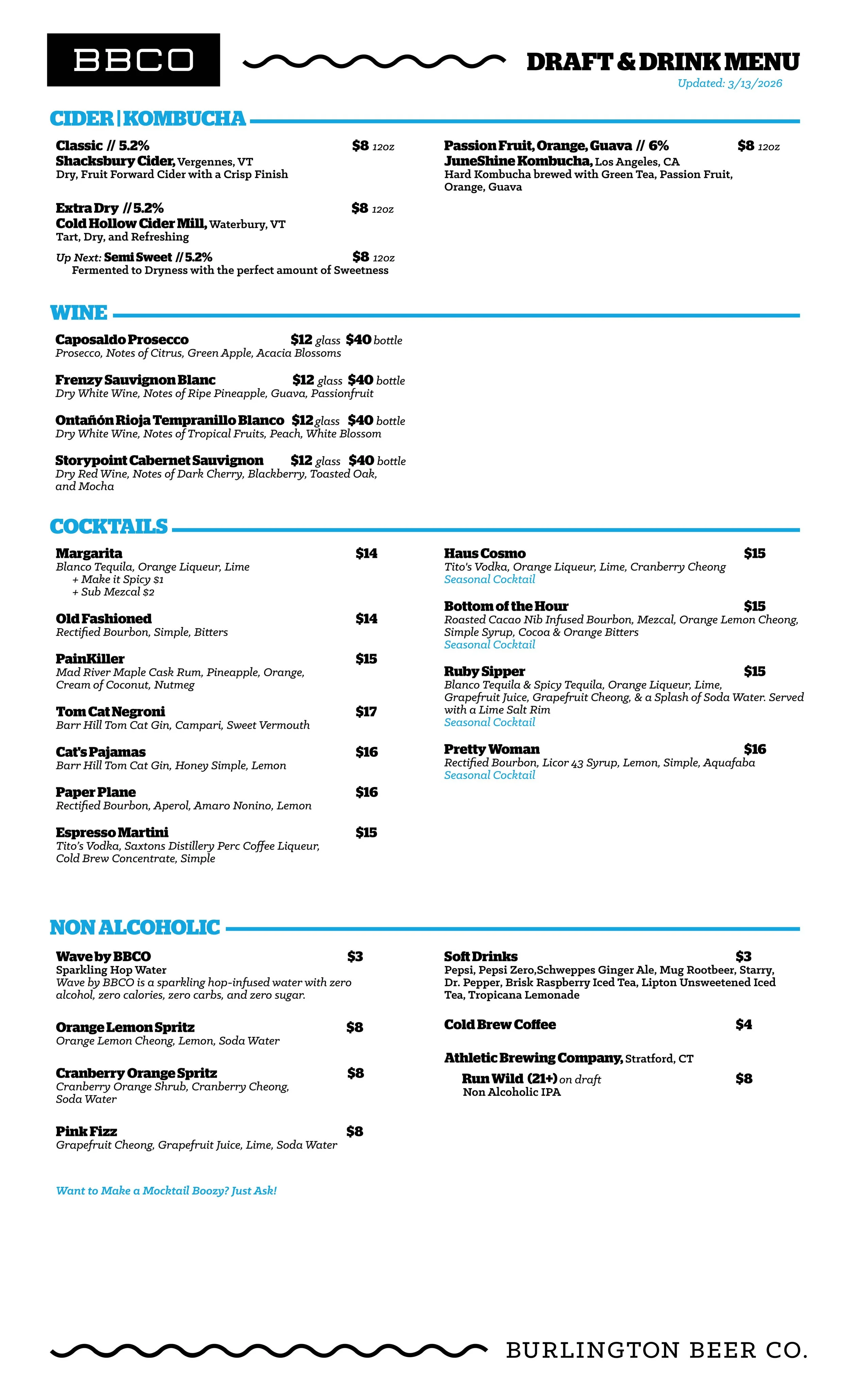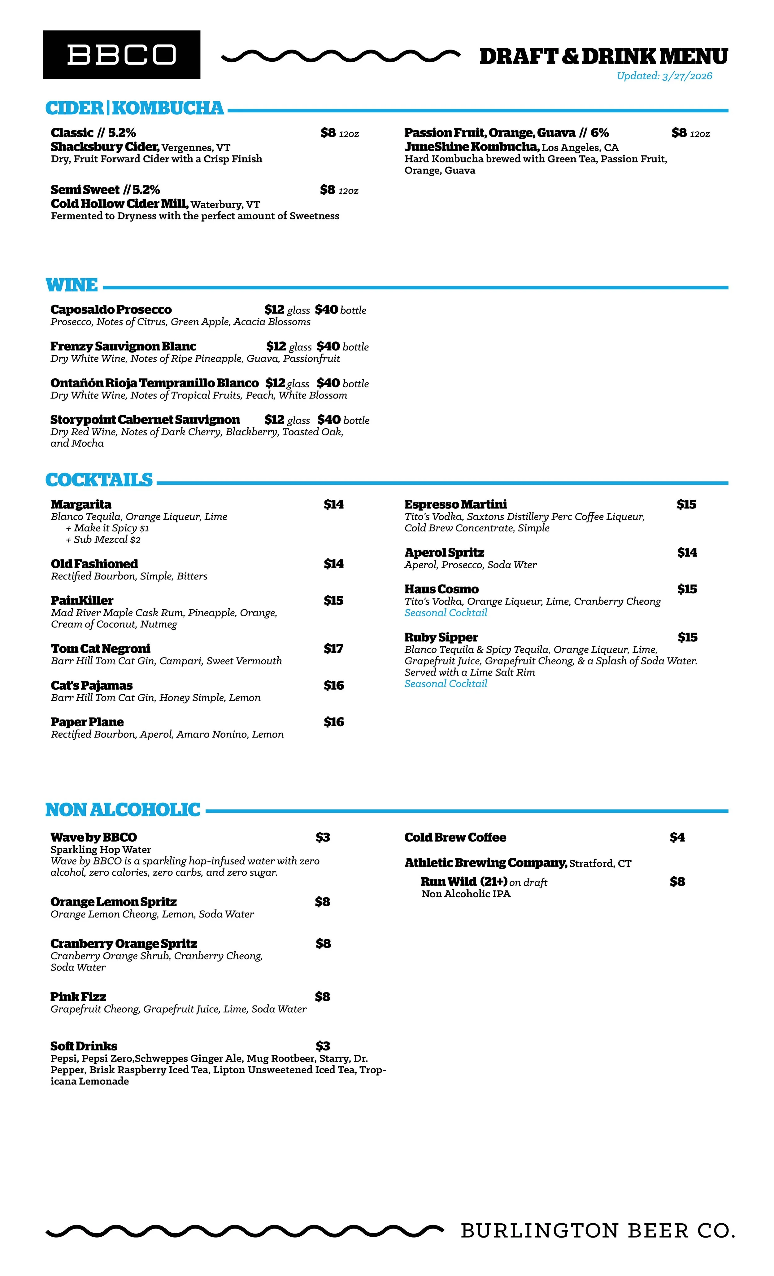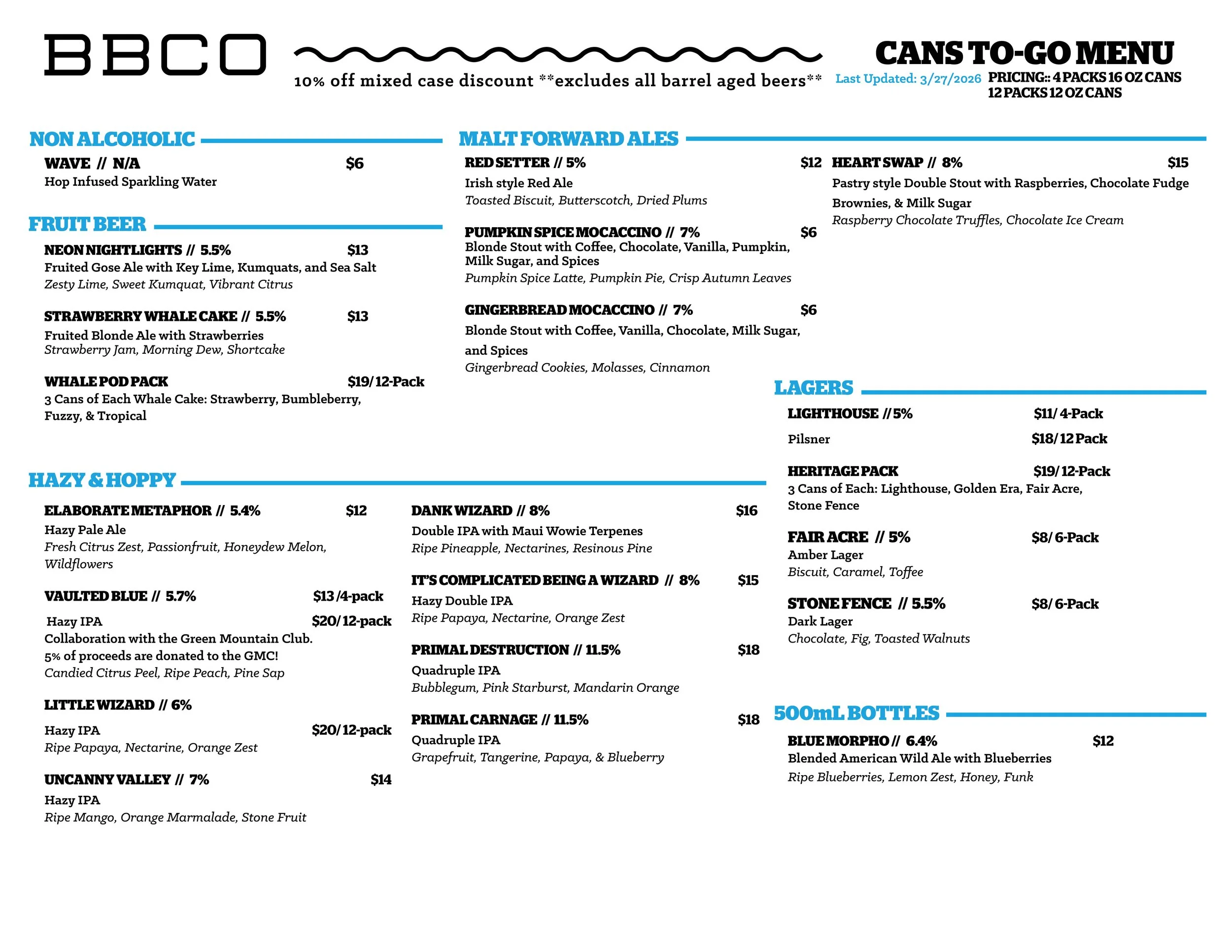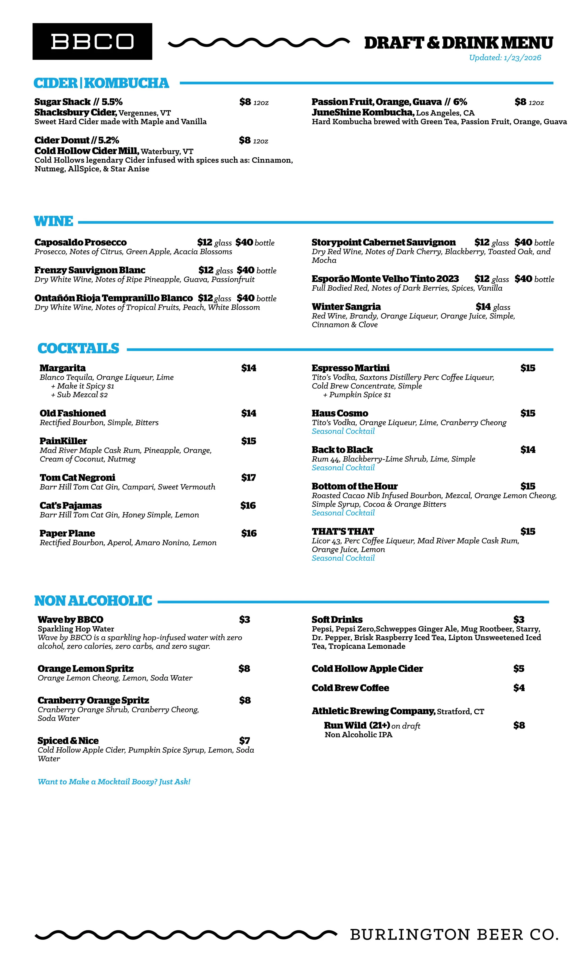 Current Beer Menus